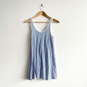 Cheap Monday Women Striped Chest Pocket Mini Tank Beach Dress Blue White Size XS
