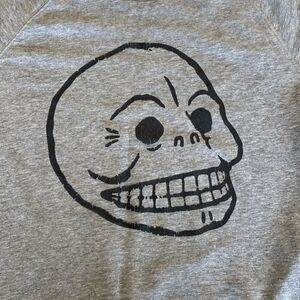 Iconic Cheap Monday skull sweatshirt. Grey cotton / poly blend and black skull. It’s in clean condition with no stains but note the skull is showing some cracking (see photos), still looks great and has plenty of life left.