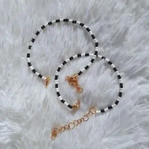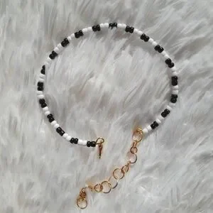 Gold bracelet with black and white beading. Made by Cym