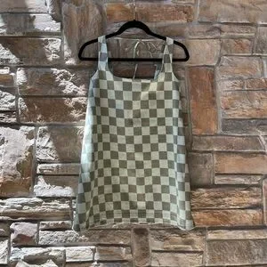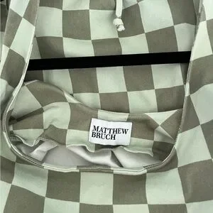 Matthew Bruch green checkered shift dress. Brand size 1. In used condition with signs of wear! 97% cotton made in USA