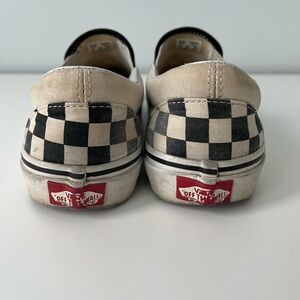 Checkered Vans in decent condition. Clear signs of wear as shown in the images.