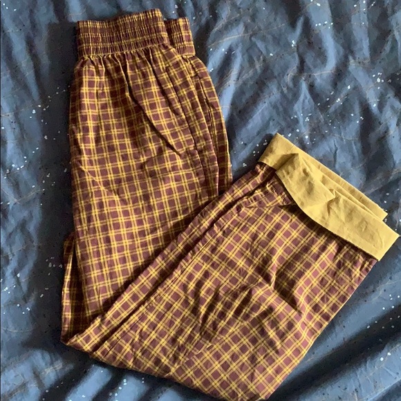 This is a high quality checkered pants that can be rolled up at the bottom for a stylish look. It runs slightly small for a size s, and is a little tight for me at the waist. Other than that, it is made very well. (Color is most accurate in closest shots)