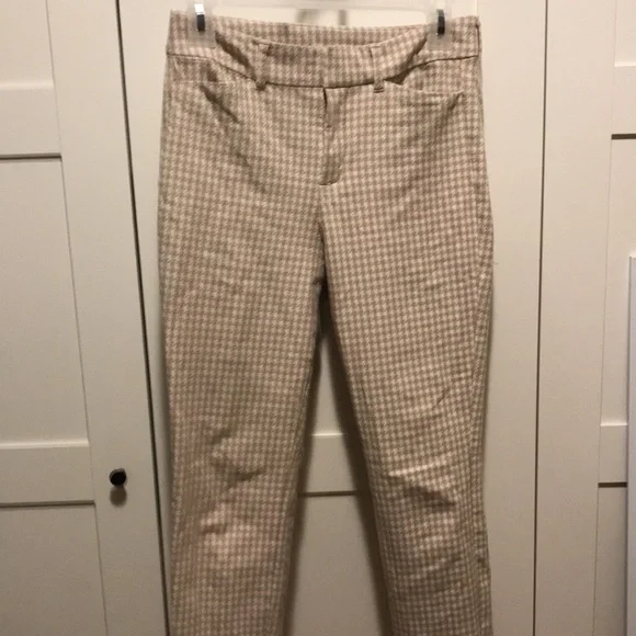 Old navy pixie pant in cream and beige checkered pattern. GUC. Comfy, stretch pant with soft feel.