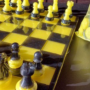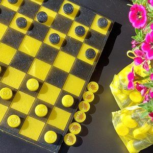 Custom Handmade Resin Yellow/Black Checkers and Chessboard Set
