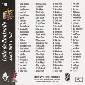 Checklist Card - 2010/2011 Upper Deck Series 1 Cards 1-100 - Card Number 199