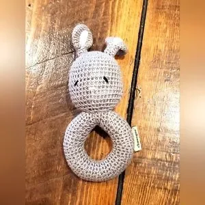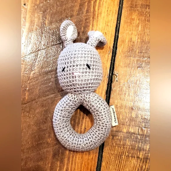 Cheengoo organic crocheted bunny ring rattle. No tags, but not used. Very soft and excellent quality. Smoke/pet free home.