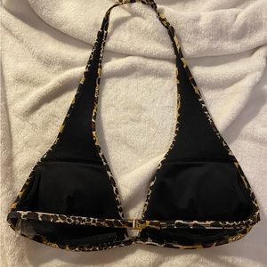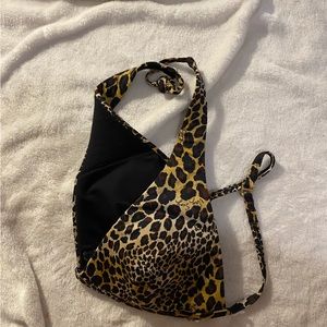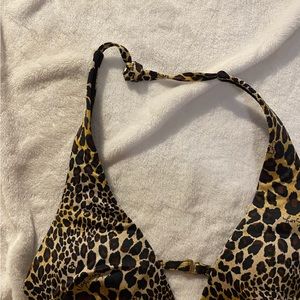 Very comfortable cheetah print bikini top with removable padding. Ties up at neck are adjustable