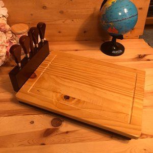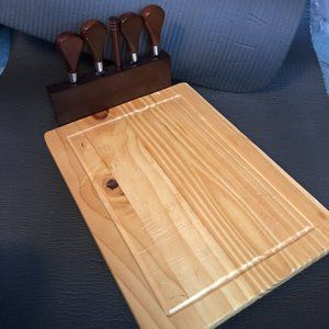 Wood Cutting / Cheese Board with Built-in Cheese Knives Storage for Spreaders