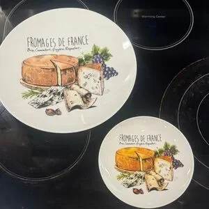 Elevate your dining with the Cheese Plate Set. These elegant white plates feature delightful cheese illustrations, perfect for any cheese enthusiast.