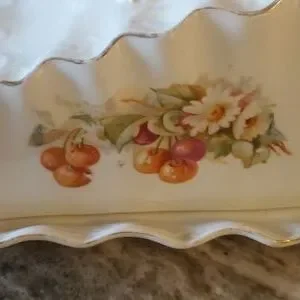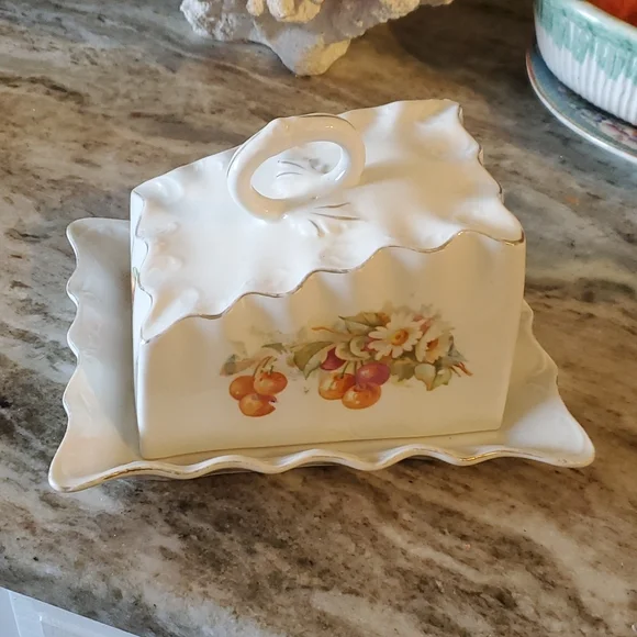 very old cheese dish used back in the day to hold your piece of cheese..has a tiny chip so I'm reducing price is not noticeable...