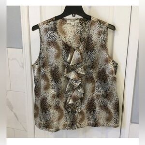 Cheetah Print Button Down Top With Ruffles