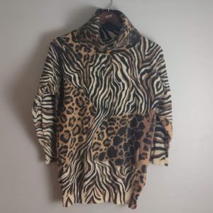 Cheetah Print Wool sweater, Soft Angora Rabbit Hair+Lambswool blend Knit Sweater