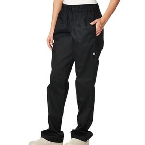kitchen work pants, chef pants polyester cotton, Chef Works uniform pants, black pull on pants, chef uniform size 2X, new with tags chef pants, comfortable workwear