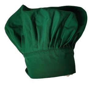 Stylish green chef hat with pleated design. Perfect for culinary enthusiasts.