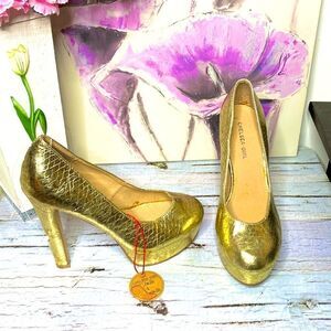 Gorgeous gold snakeskin platform gold heels. New with tags.