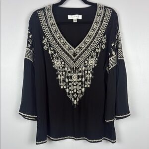 Chelsea & Theodore Black Boho Embroidered Peasant with Bell Sleeve Size Large