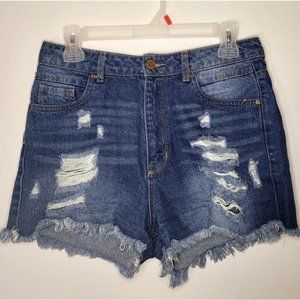Snag these shorts for a fresh springtime look. Features high-rise waist, distressing, frayed hem, 5 pockets and zip fly.