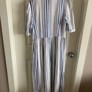 Chelsea and Theodore Lovely Blue and White Stripped Linen + viscose Dress Sz Med