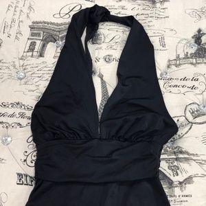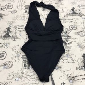 A plunging neckline takes center stage on this shapely one-piece styled with convertible straps that switch from halter to crossback styles.