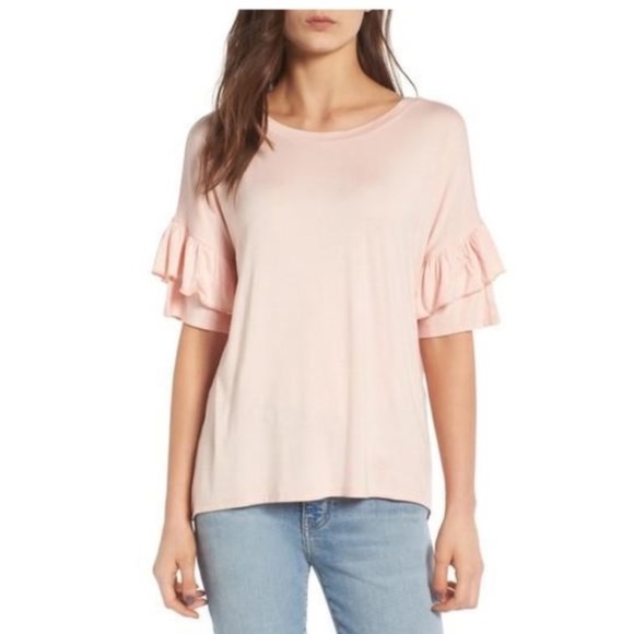 An easy tee with softly shaped ruffles at the sleeves offers a sweet and simple upgrade to your weekday routine.