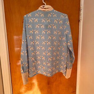 Chemise bleue à nœud et motifs chiens / Icône blue dog-print pussybow blouse