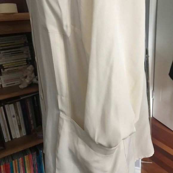 Élégant chemisier en soie de couleur crème, avec poches sur le devant. De qualité. Jamais porté.