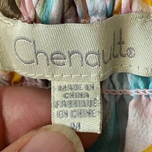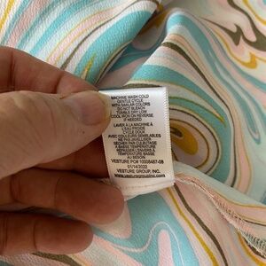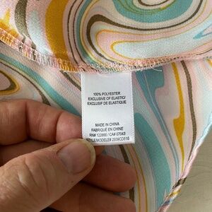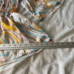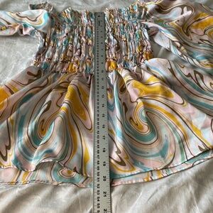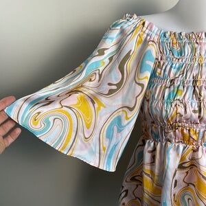 Chenault Women's Abstract Pastel Splash Off Shoulder Bell Sleeve Flared Blouse M