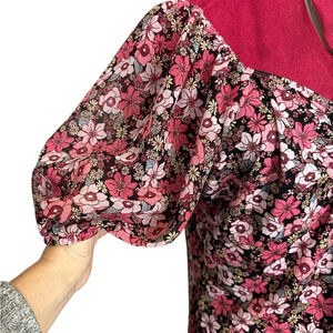 Chenault floral knit top chiffon sleeves twist-knot front elasticized sleeves
