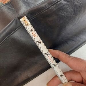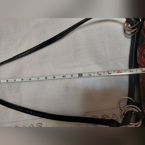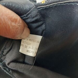 Chenson Synthetic Hobo Tote Bag with Aztec Flare. Front of bag has an Aztec-type pattern with 2 wide pockets that go to the seams on either side. Back of bag is black with deep zippered pocket. Strap is super long and can be used as double handle. It can also be used as a single strap for over the shoulder or cross-body. The strap can be used to pull the mouth of the bag together to form a bucket bag. It is in great condition with only the ribbing around the outside front Chenson logo looking a bit worn. (see photo). Great bag for on the go. Approx 12" x 16" x 4". strap is approx 17".