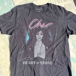 Cher Heart of Stone Bravado graphic tee shirt. Very good used condition, no notable signs of wear. 100% cotton, tagged as a large. Measures 17" across shoulders, 21" pit to pit, 28" long.