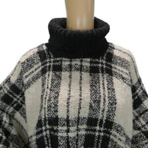 Cherie Bliss Big Grid Plaid Turtleneck Poncho