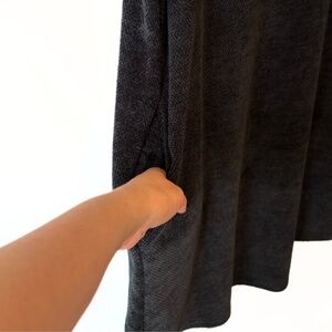Stay comfy and cute in this Cherish Chenille Pocket T-Shirt Dress. Made from an ultra-soft chenille fabric, this dress is perfect for lounging or casual outings. It features rolled short sleeves for a relaxed touch and a simple, flattering silhouette that’s easy to dress up or down. Whether paired with sneakers or layered with a jacket, this versatile black dress is a must-have for everyday wear. In excellent condition.