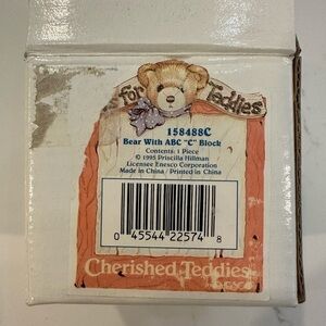 Cherished Teddies Bear with “C” Block ABC 1 pc. VTG 1995 NIB Collectible