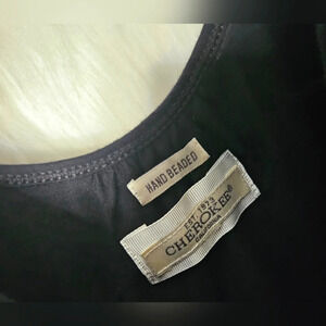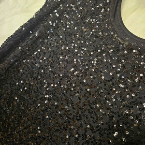 Add a touch of dramatic flair to your wardrobe with this hand-beaded and sequined layered top! The outside shines with intricate detail in black, while the inside layer is made of soft cotton for comfortable wear. Perfect for dressing up or adding a touch of glamour to your everyday look, this unique piece is both eye-catching and effortless to wear.