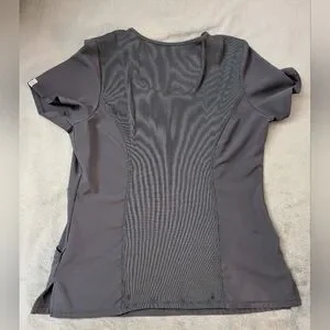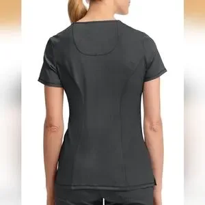 A Contemporary fit mock wrap top features two set-in front pockets, a logo O-ring above left pocket, left scissor pocket, one interior pocket, front and back princess seams, and side vents. Stretch rib knit at the center back panel gives this top its slimming shape and allows for extra movement and comfort. Center back length: 26". The comfortable stretch poplin fabric and super stretchy rib knit is the perfect combo for healthcare professionals.
