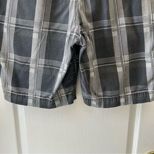 Cherokee Men's Flat Front Cotton Chino Shorts Black and Gray Plaid Size 34