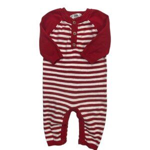 Cherokee Red-and-White Striped Knit Henley Jumpsuit size 0-3 Months