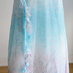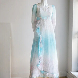 Adorable, etherial, watercolour, cherry blossom and sky print, chiffon overlay maxi dress.