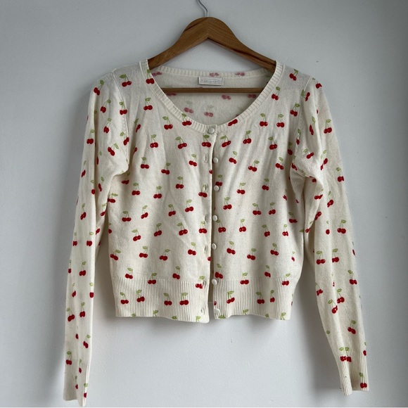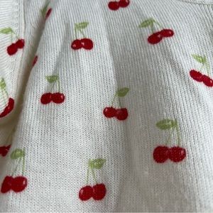This charming white sweater features a delightful cherry pattern, perfect for adding a playful touch to your wardrobe. Crafted for comfort and style, it's a must-have for any fashion-forward individual.