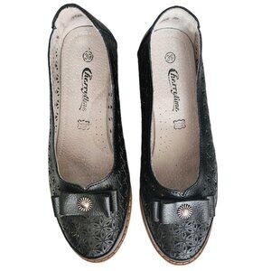 Cherrytime Black Leather Wedge Heels Women 8.5 Cottagecore Academia