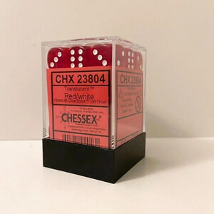 Chessex 36 Dice Set Translucent Red White 12mm CHX 23804