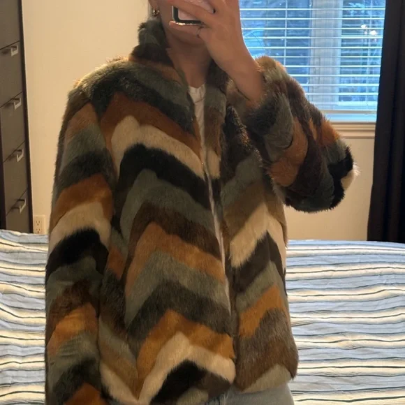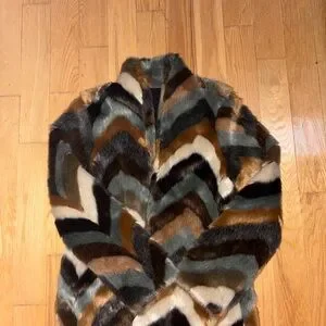 Mint condition chevron pattern soft faux fur jacket. Colour is a blend of earthy, this jacket is perfect for dressing up your winter wardrobe.