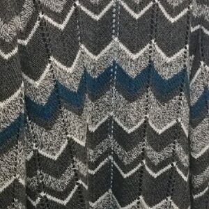 🌼 Linea Maglia cardigan sweater. Made in Italy, acrylic wool alpaca blend, open cardigan, stylish chevron patterned cardigan with shades of gray, blue, and white. Perfect for layering.