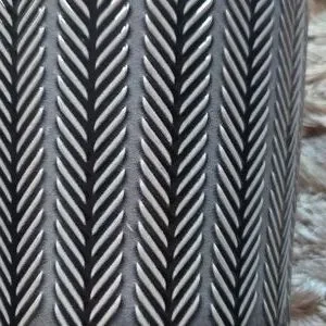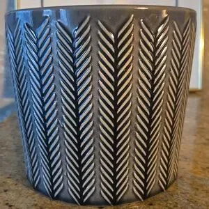 Enhance your home with this stylish chevron patterned gray planter. Perfect for adding a touch of nature indoors.