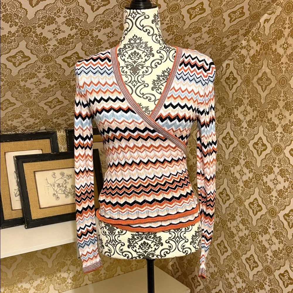 Chevron Patterned Wrap Sweater