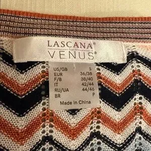 Stylish chevron patterned wrap sweater featuring a blend of vibrant colors. Perfect for adding a pop of color to your wardrobe.