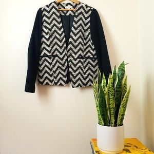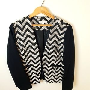 KENAR, CHEVRON BLACK AND WHITE BLAZER WITHOUT COLLAR