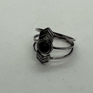Bohemian style chevron ring featuring black stone set in dark silver-toned chevrons.