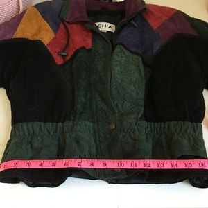 Chia leather multi colour patchwork bomber jacket. This vintage jacket is in excellent condition. There does not appear to be any wear and I would not be surprised if this vintage jacket was even worn back in its 1990 hay day. Size is L. Open to offers.