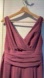 David’s Bridal gown. Chianti color. Worn once. Full length. Lovely flow. Lines with sheer chiffon on top. Unaltered. Is a size 4 but I am a pear shaped size 6 and it fits. About 17 inches across under arms. About 61.5 inches from top of shoulder to bottom hem.